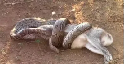 可怕身影終於出現了,一條蛇吞食