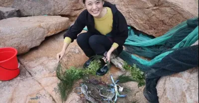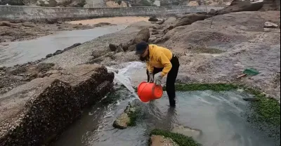 漁妹發現一個古怪的大水坑,長滿青苔滿是綠,舀干水一看大叫