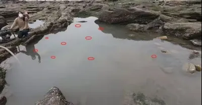 颱風天趕海發現鰻魚窩, 皮皮瘋狂舀干水坑,竟被大物咬到