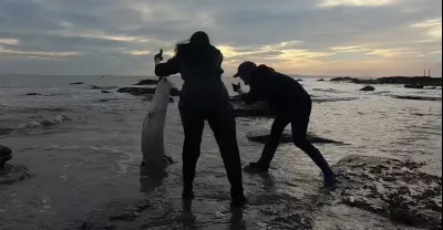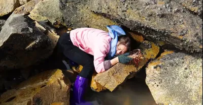 海邊出現神奇一幕,「紅色」海蝦齊聚水坑,表妹徒手衝下去一頓按,這種蝦彈起來超疼