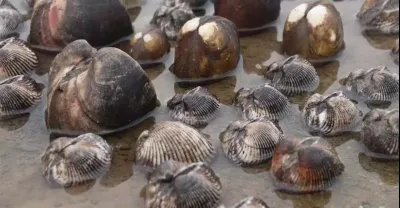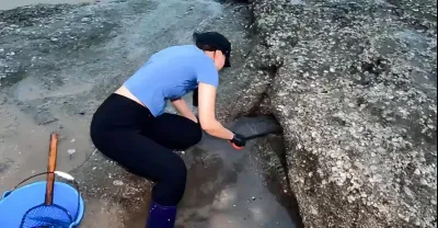 大風後小妹無人島趕海遇怪事,成群的毛蛤被打出來,個個都有拳頭大