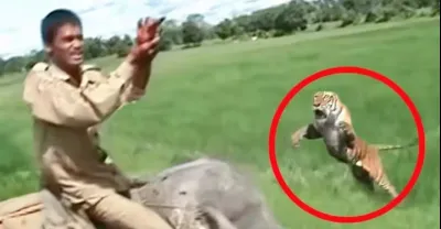 遊客騎大象遊玩,突然遭老虎襲擊!鏡頭拍下全過程