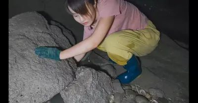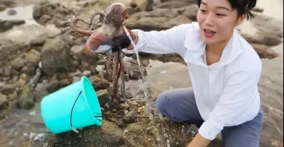 大退潮趕海抓到大貨,被皮皮捏在手裡就「嚇尿」了,這場面真搞笑