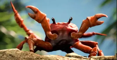 皮皮把螃蟹放到水坑裡,竟發現坑底有個大傢伙,急忙跳下去抓