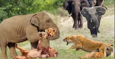 Elephant Massacre! Aggressive Elephants Tortured The lion's Family To Death To Avenge The Calf