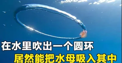 在水裡吹出一個圓環,居然能把水母吸入其中,真是太不可思議了!
