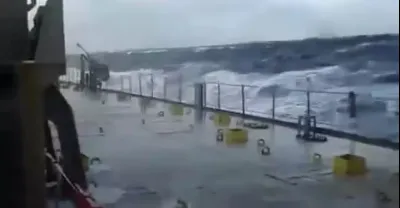 海上大型鑽油台遇上風暴引發的海洋大浪!