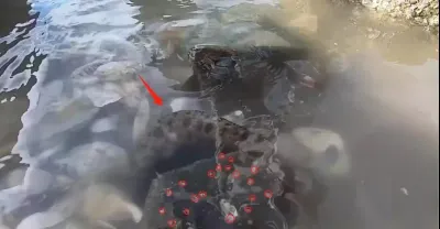 島坑裡形成一個魚窩,皮皮下去發現異常兇猛的大貨,抓得冷汗直冒