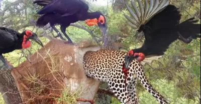 Massacre In Tree! Hornbill-Bird Parents Cooperate To Attack Leopard Madly To Save Baby From Death
