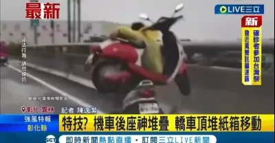 這是什麼神技?騎士後座疊電動機車不忘一手扶 單手搖搖晃晃慢速騎 展現驚人平衡感!轎車頂堆紙箱移動 用膠布緊緊黏牢令人嘆為觀止