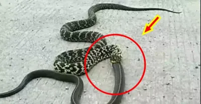 「一裏有菜花,十裏無毒蛇」!菜花蛇捕食眼鏡蛇,三口直接吞下去!