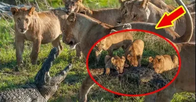 被獅群分屍的鱷魚突然詐屍,一口把獅子爆頭!攝影師拍下詭異一幕!
