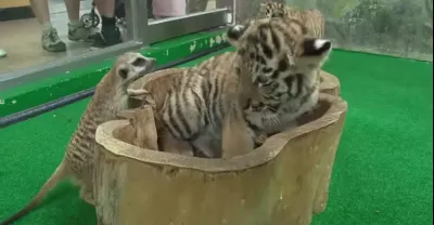 3隻小老虎真憋屈!剛被狐獴欺負完,又被猩猩胖揍一頓