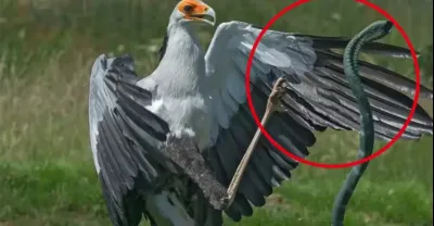刺激!眼鏡蛇大戰蛇鷲!有心逆天無力反殺,眼鏡蛇像辣條一樣被吃掉!