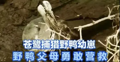 #蒼鷺 捕獵野鴨幼崽,#野鴨 父母勇敢營救,甚至丟掉了自己的性命