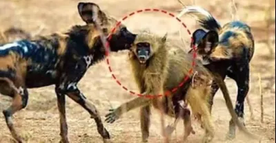 彪悍狒狒單挑10幾條野狗,直接跟狒狒干架,狒狒一拳打野狗