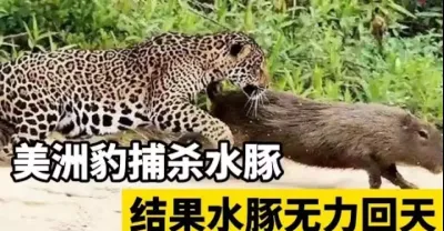 #美洲豹 捕殺 #水豚,瞅准機會快速飛撲,水豚無力回天