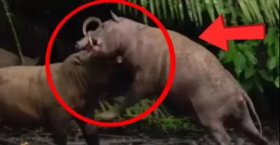 「鹿豬」試愛失敗怒氣大發!公鹿豬長獠牙直刺對方氣管要害處,母鹿豬瞬間奄奄一息,動彈不了,遺憾為愛而終!鏡頭記錄淒慘過程【動物視界】
