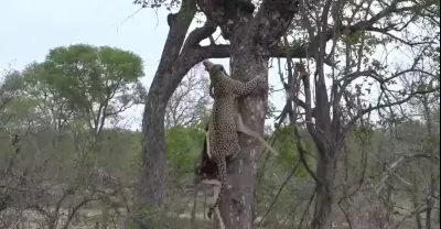 Leopard Karula Hoists her kill [Sunset Drive Oct 13, 2016]