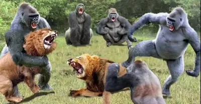 Giant Gorilla provokes Lion - Lion Subjectively Receives a Disastrous Defeat || Animals Fight