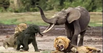 巨象與5隻獅子王打架只為保護小象 鱷魚殺獅子王!驚人的!!麋鹿與科莫多龍激戰 科莫多龍的殘酷戰鬥場面!