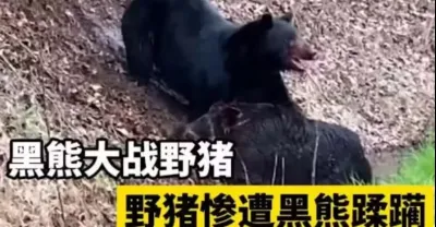 黑熊獵殺野豬。 野豬被黑熊從山腳拉下來,沒有出路 | 動物世界