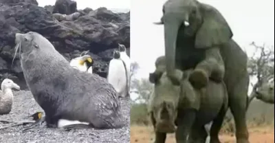 #動物惡霸,南極海豹先強迫帝企鵝然後吃掉,非洲雄象壓迫犀牛致死!