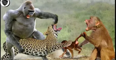Gorilla #Goes on a Rampage When Leopard Kidnaps Baboon Baby - Gorilla vs Baboon, Human, Leopard