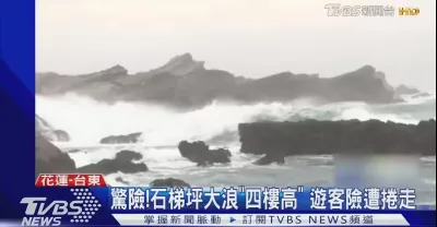 #獨家 驚險!石梯坪大浪"四樓高" 遊客險遭捲走|TVBS新聞