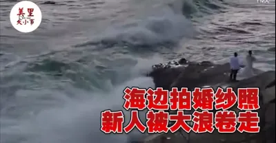新人海邊石頭拍婚紗照 被大浪捲走 !太可怕了!【視頻】