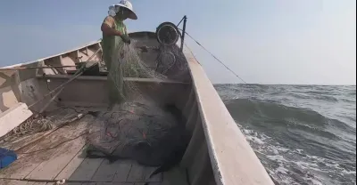 阿雄出海遭遇大浪天氣,費力拉起大網收穫甚微,阿雄內心壓力很大