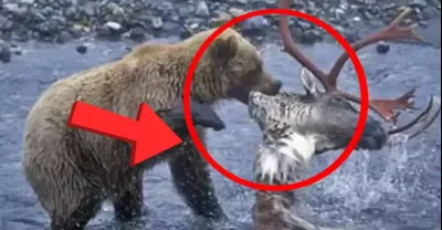 餓瘋了的棕熊戰鬥力有多強?瘋狂捕食獵物,一口咬斷角鹿的脖子,頭身分離,現場畫面極其殘暴!#動物世界