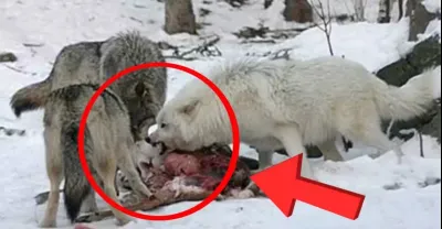 枯瘦如柴的北極熊攻擊狼窩,吃掉狼崽,成年狼群不顧一切,奮起撕咬營救,北極熊最後遺憾落敗,狼群吃的屍骨無存!