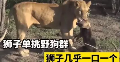 雄獅單挑野狗群,幾乎是一口一個,盡顯草原霸主本色
