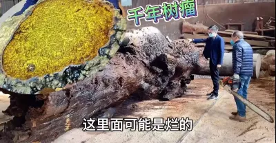 十幾萬的千年樹瘤扔在草堆,幾年後鋸開一看成這樣了,是虧是賺?#根雕