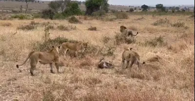 詭異的一幕!花豹被3隻母獅圍堵,雄獅過來獵殺卻遭母獅群毆