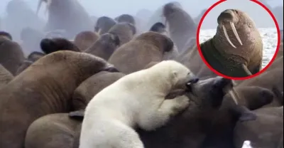 一隻北極熊攻擊海象群,饑餓讓它喪失理智,鏡頭完美記錄全過程!