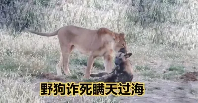 獅子捕獵一隻野狗,沒想到野狗演技如此高超,裝死騙過獅子