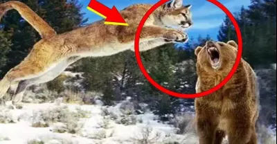 歷史罕見!美洲獅對戰大棕熊真實場景:直接鎖喉招招致命兇殘至極,看到秒殺我才相信!喜洋洋說