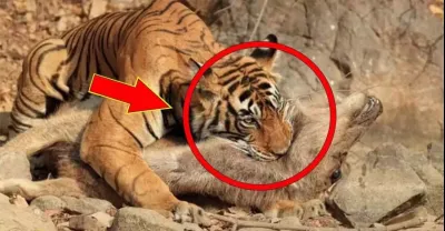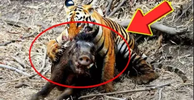 一周年的小老虎獵殺300公斤大野豬,真是不知天高地厚,結果慘不忍睹。媽媽也來晚了!