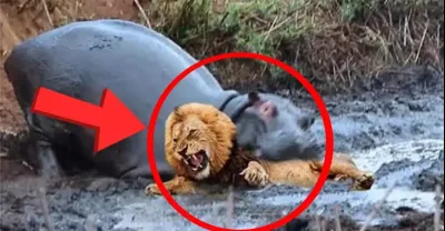 雄獅誤入河馬領地,被河馬一口咬住,鮮血染紅了泥潭,慘叫聲連綿不絕,雄獅眼神絕望,只能等死!#動物世界