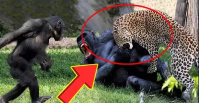 睡覺的大猩猩遭遇200公斤花豹偷襲,小猩猩看到拿起石頭奮勇直衝救媽媽!場面驚心動魄!