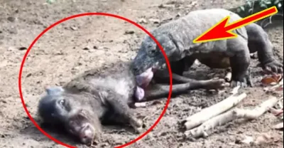 科莫多巨蜥活吞野豬,場面令人發指,捕殺水牛一招足以斃命!