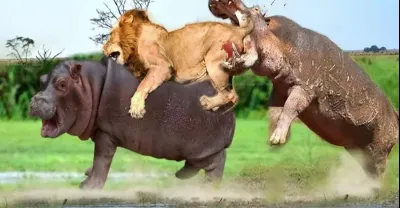 孤獨的河馬遇到14隻獅子和意想不到的結局,野生動物襲擊!憤怒的獅子咬猴子,因為他偷了他們的孩子,大猩猩對獅子,老虎攻擊人類!