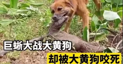 巨蜥大戰大黃狗,大黃狗發揮勇猛,狠狠教訓了巨蜥並最終咬死!