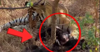 東北虎怒咬300斤黑熊,腹部和內臟被掏空,肉還冒著熱氣,場面看了讓人膽戰心驚,七分鐘鏡頭記錄全過程!#動物世界