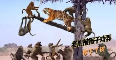 老虎爬樹逮猴子 ! 不料被猴子戲弄一番,猴:你不是不會爬樹嗎?