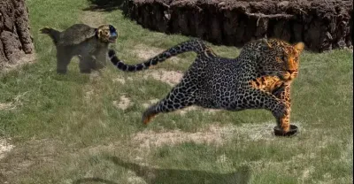 憤怒的蜜獾非常用力地攻擊豹子,野生動物攻擊