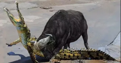 極端戰鬥水牛與鱷魚,野生動物攻擊