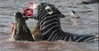 斑馬的臉被鱷魚撕爛,在肯尼亞的野生動物園穿越馬拉河扯掉了